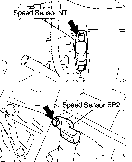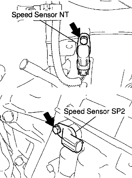 a. Remove the 2 bolts, speed sensor NT and SP2.