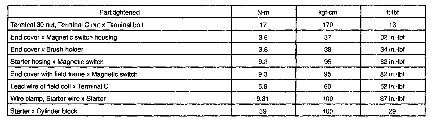 Starting - Torque Specification: