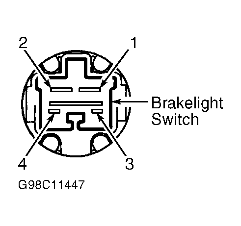 - Check that no continuity exists between terminals No. 3 and 4 with brake pedal depressed. Check that continuity exists between terminals No. 3 and 4 with brake pedal released. Adjust or replace brakelight switch if operation is not as described.