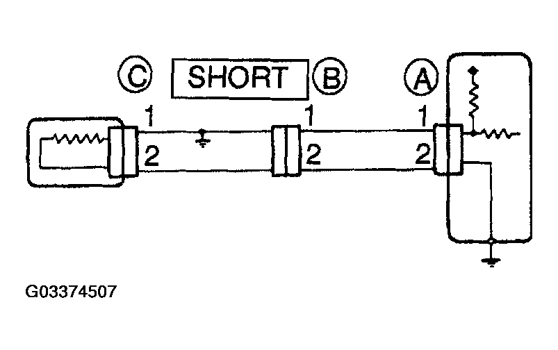 Therefore, it is found out that there is a short circuit between terminal 1 of connector "A" and terminal 1 of connector "C".