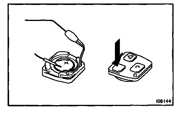 Home >> Lexus >> 2003 >> RX 300 AWD V6-3.0L (1MZ-FE) >> Repair and Diagnosis >> Body and Frame >> Locks >> Keyless Entry >> Keyless Entry Transmitter >> Keyless Entry Transmitter Battery >> Testing and Inspection
