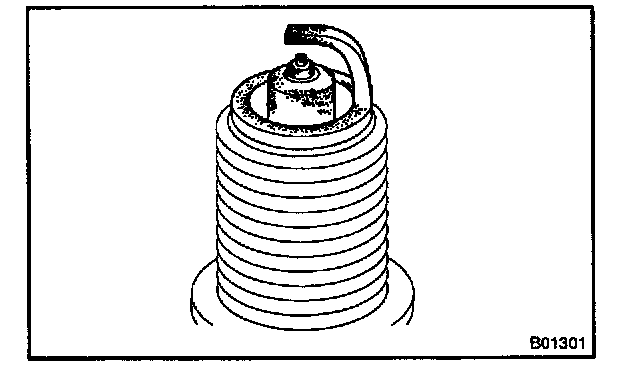 HINT: If there are traces of oil, remove it with gasoline before using the spark plug cleaner.