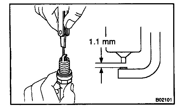 Correct electrode gap for new spark plug: 1.0 - 1.1 mm (0.039 - 0.043 in.)