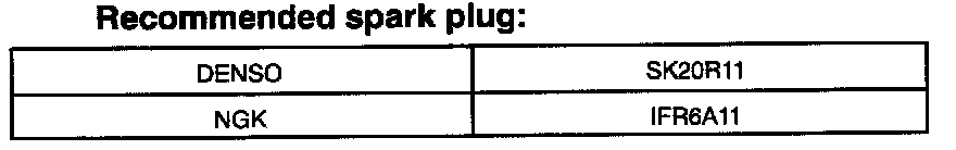 - Spark plug should be replaced every 100,000 km (60,000 miles).