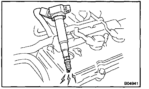 NOTE: To prevent gasoline from being injected from injectors during this test, crank the engine for no more than 5 - 10 seconds at time. If the spark done not occur, do the test as follows: