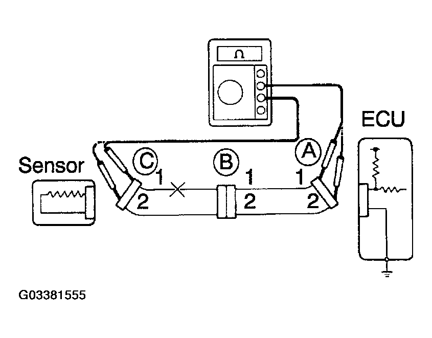 Therefore, it is found out that there is an open circuit between terminal 1 of connector "A" and terminal 1 of connector "C".