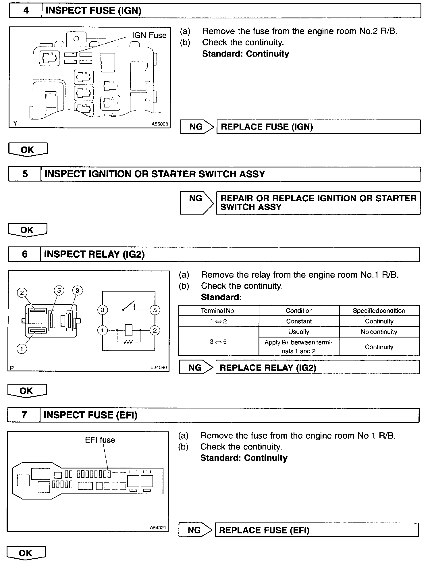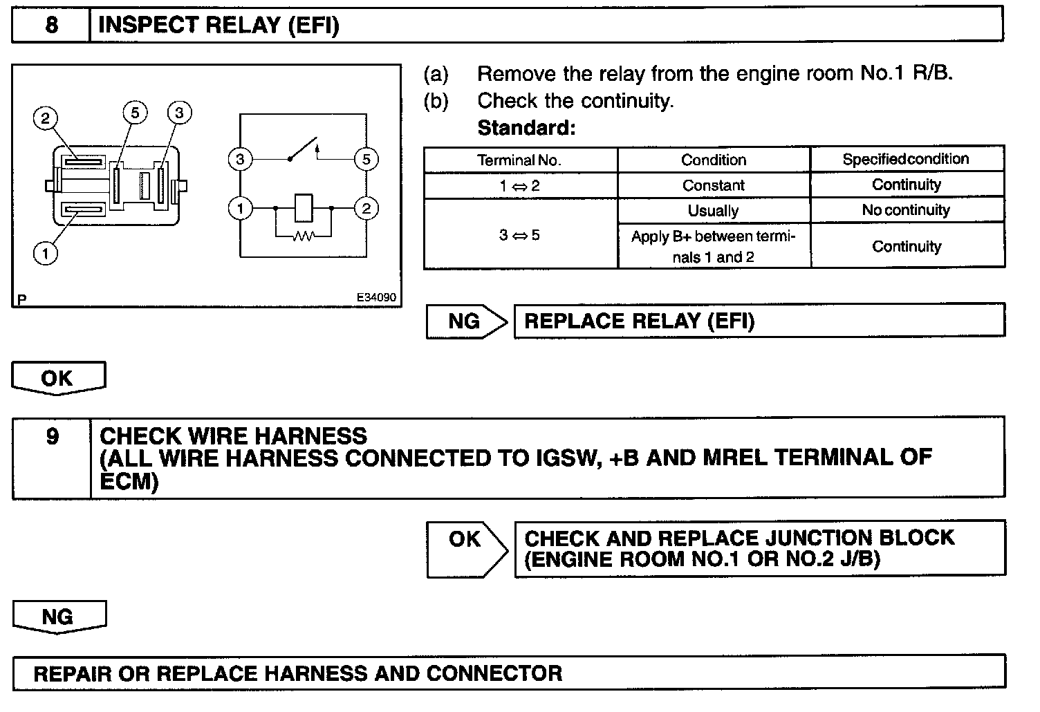 This signal causes current to flow to the coil, closing the contacts of the EFI main relay and supplying power to terminal +B of the ECM.