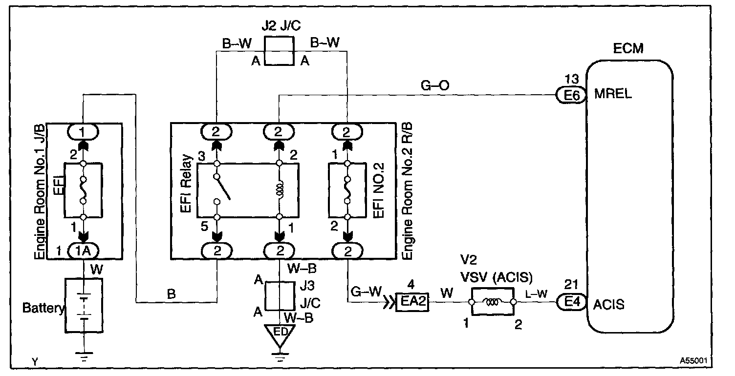 This circuit opens and closes the Intake Air Control Valve (IACV) in response to the engine load in order to increase the intake efficiency (ACIS: Acoustic Control Induction System).