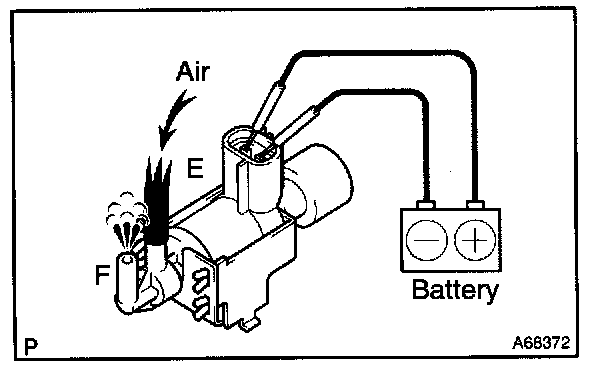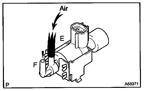 5. Check that air does not flow from port E to port F. If the operation is not as specified, replace the VSV.
