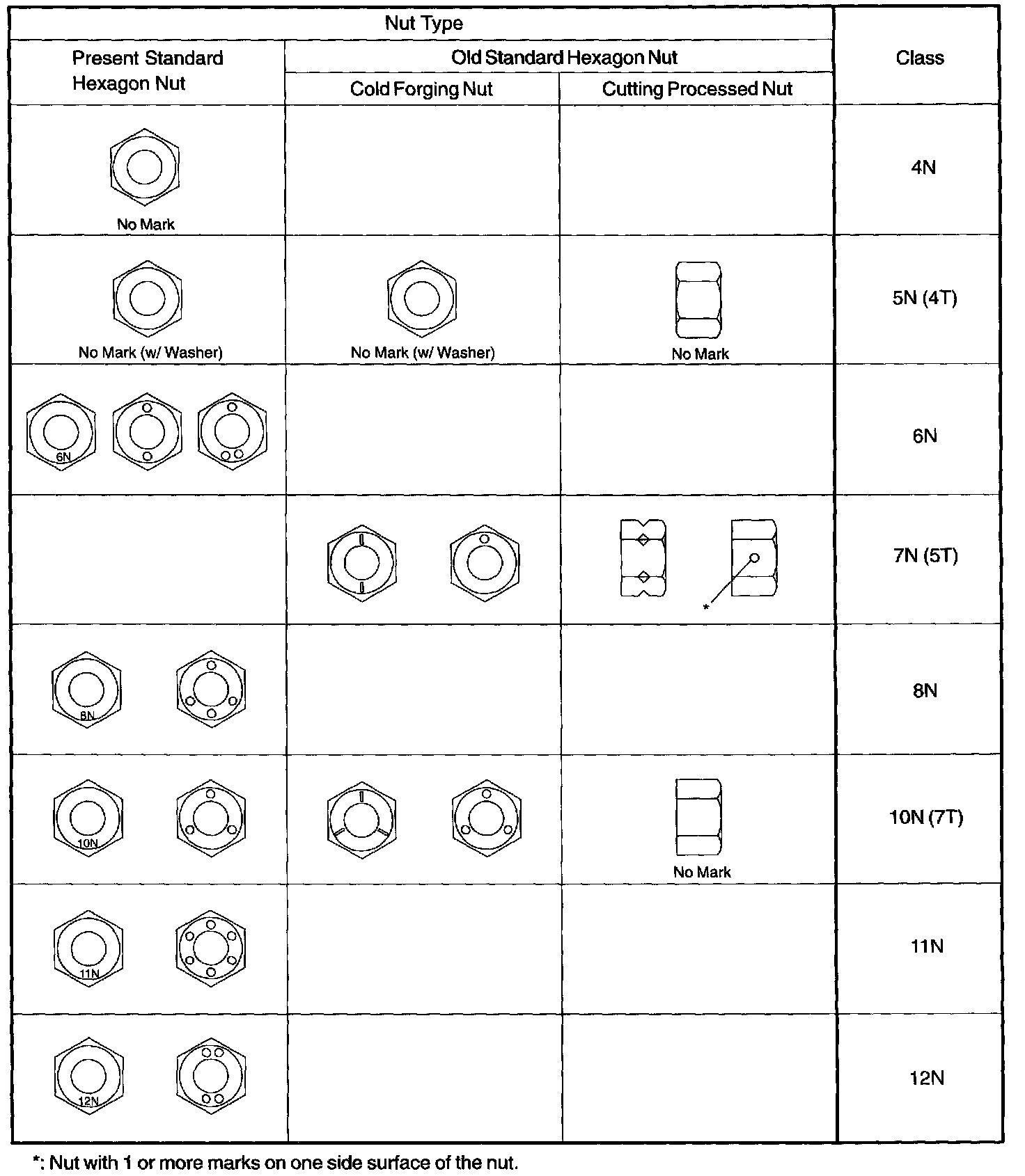 HOW TO DETERMINE NUT STRENGTHHINT: Use the nut with the same number of the nut strength classification or the greater than the bolt strength classification number when tightening parts with a bolt and nut.