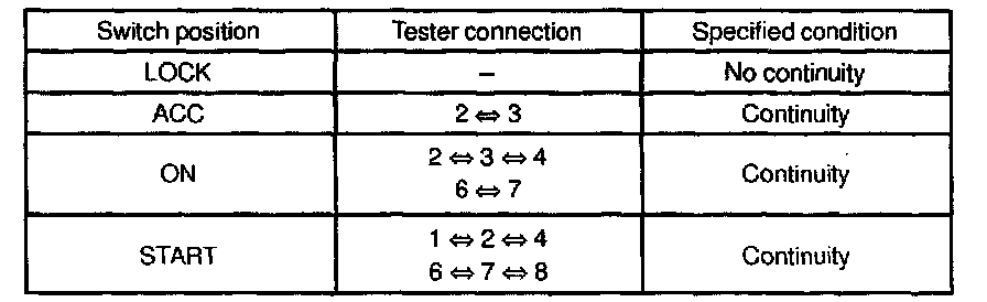 INSPECT IGNITION OR STARTER SWITCH ASSY