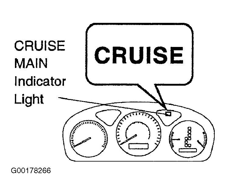 - If a malfunction occurs in the vehicle speed sensors or actuator, etc. during cruise control driving, the ECU actuates AUTO CANCEL of the cruise control and turns on and off the CRUISE MAIN indicator light to inform the driver of a malfunction. See Fig 2. At the same time, the malfunction is stored in memory as a diagnostic trouble code.