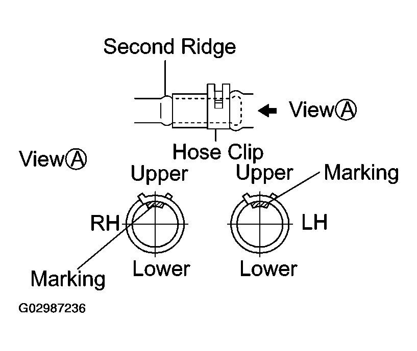 - Push the water hose onto the heater radiator pipe to the second ridge on the pipe.