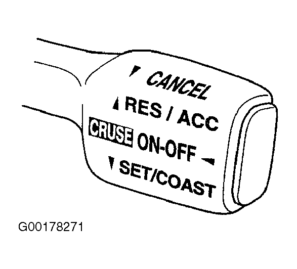- Pull the control switch to SET/COAST or RES/ACC position and hold it down or up. See Figure