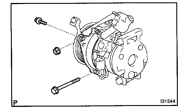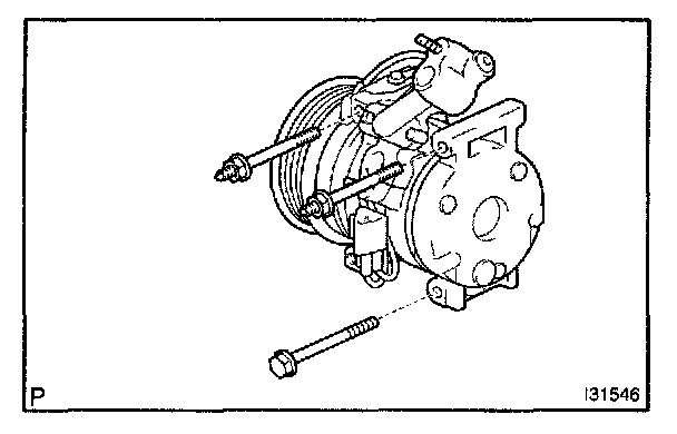 c. Remove the 3 bolts and compressor and magnetic clutch.