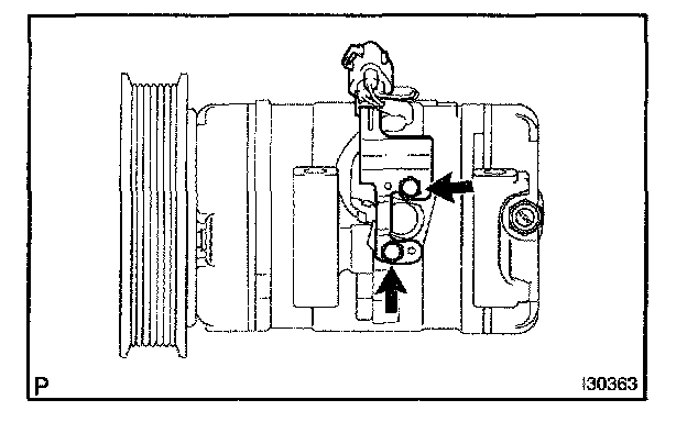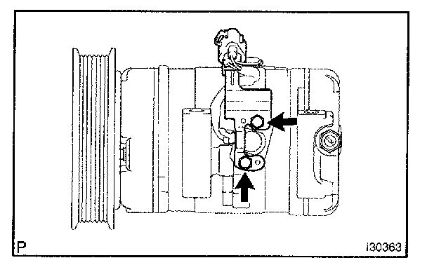 b. Sufficiently apply compressor oil to the new O-ring and fit surface of the compressor and magnetic clutch.