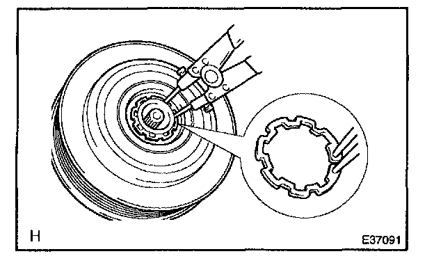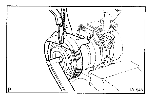 e. Using a snap ring expander, remove the snap ring and magnet clutch rotor.