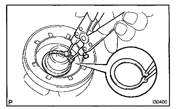 b. Using a snap ring expander, install a new snap ring with the chamfered side facing up.