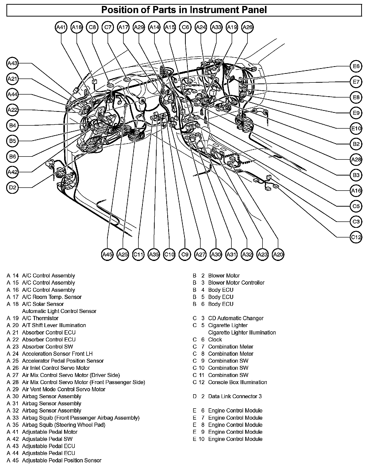 Position Of Parts In Instrument Panel: