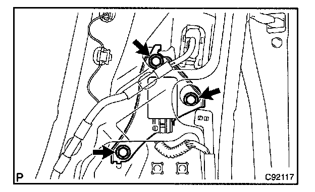 - When installing the sensor assembly, take care that the SRS wiring does not interfere with other parts and is not pinched between other parts.