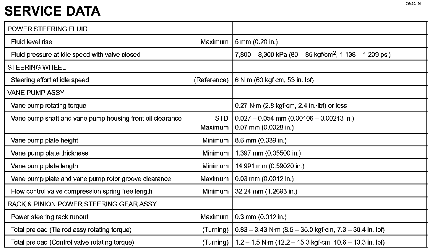 Power Steering - Service Data: