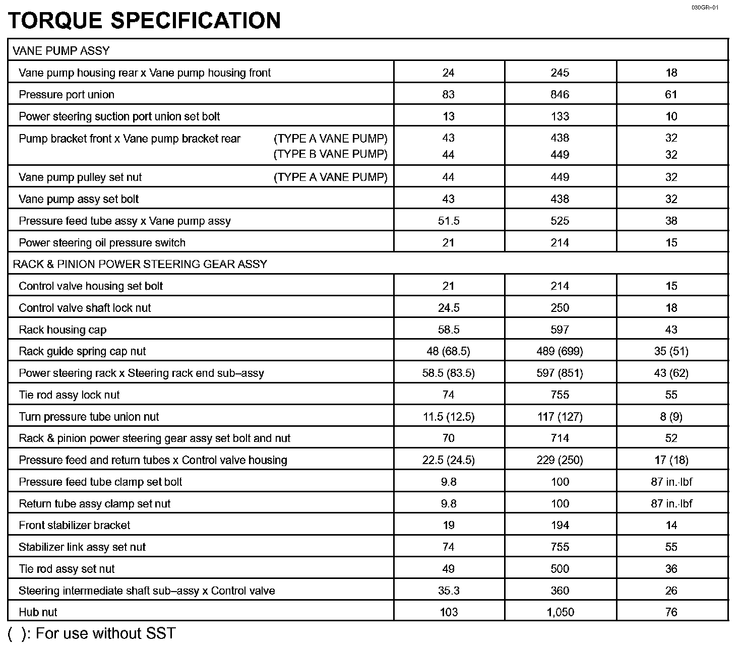 Power Steering - Torque Specification: