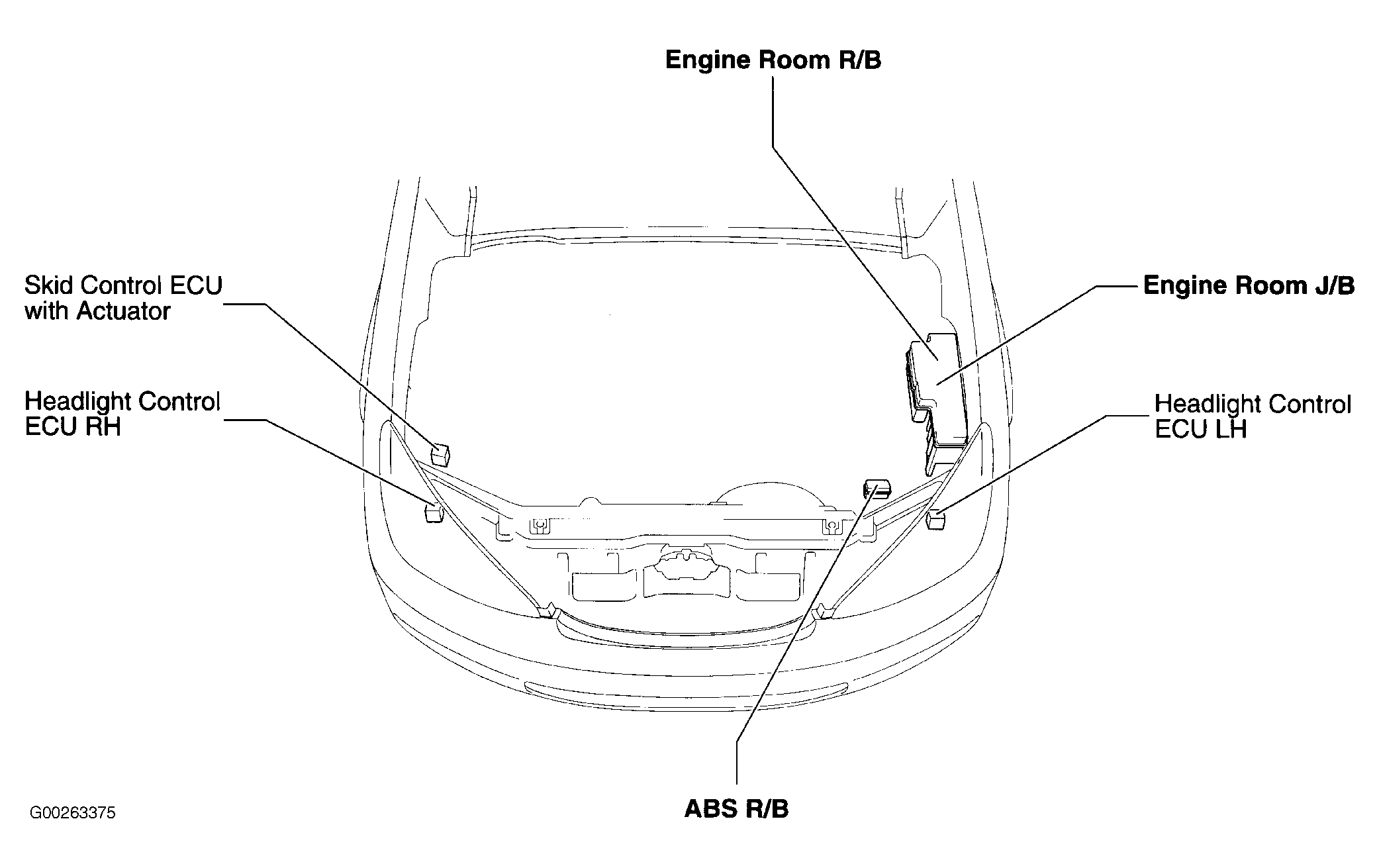 | Skid Control ECU (W/Actuator) | At right side of engine compartment. See Figure. |