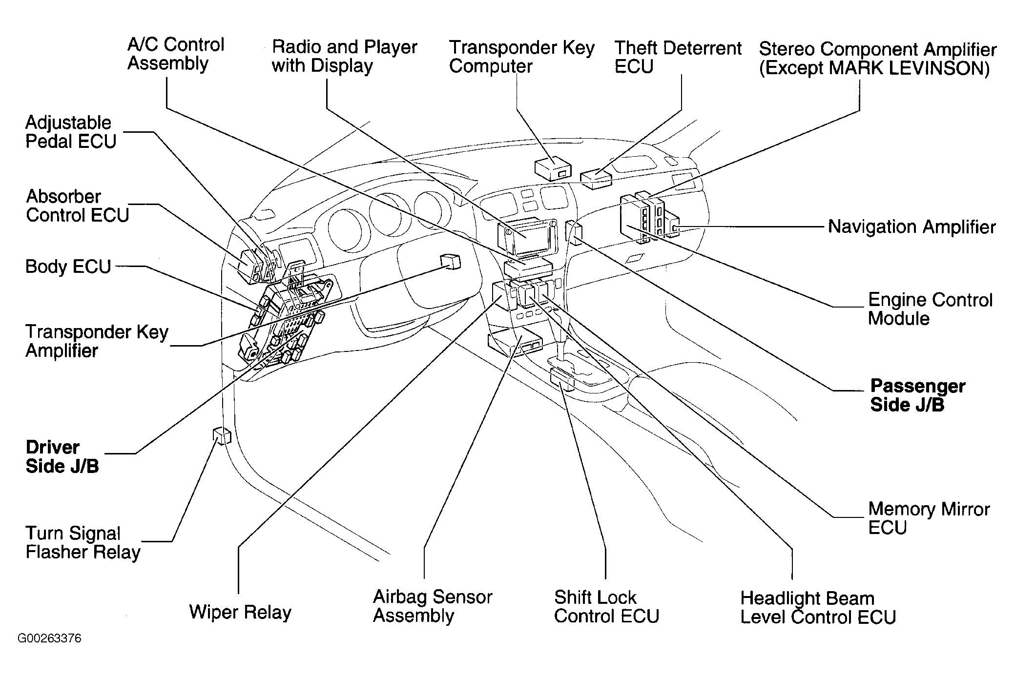| Absorber Control ECU | Behind left end of dash. See Figure. |