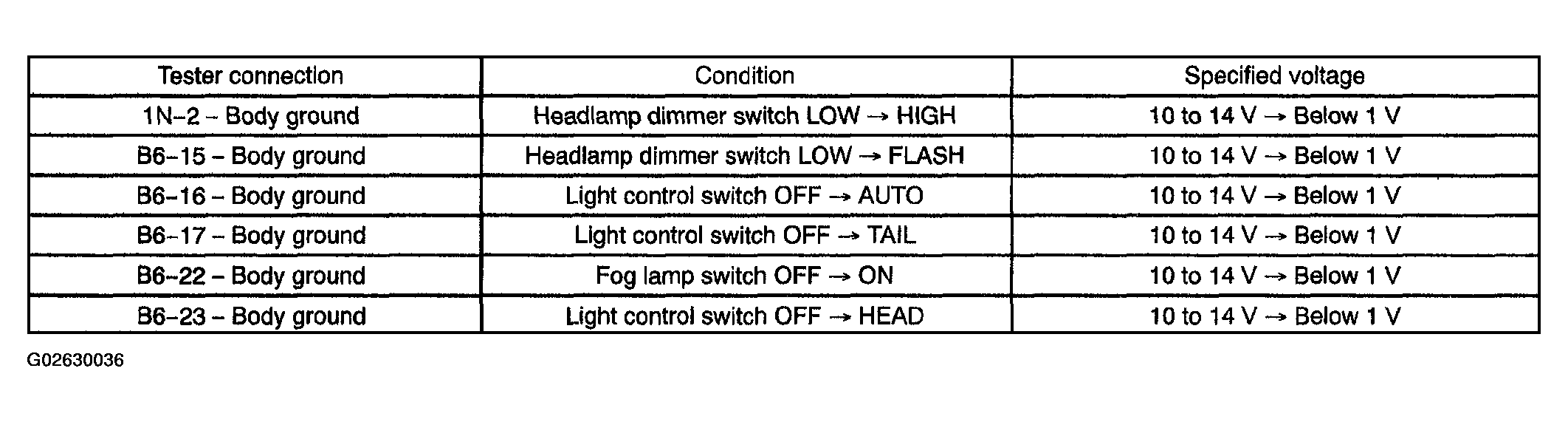 DIAGNOSIS PROCEDURE (BODY NO. 1)Item Measurement Item/Display (Range) Normal Condition Diagnostic Note DIMMER SW Headlight dimmer SW signal/ON or OFF ON: Headlight dimmer switch is in HI or FLASH position