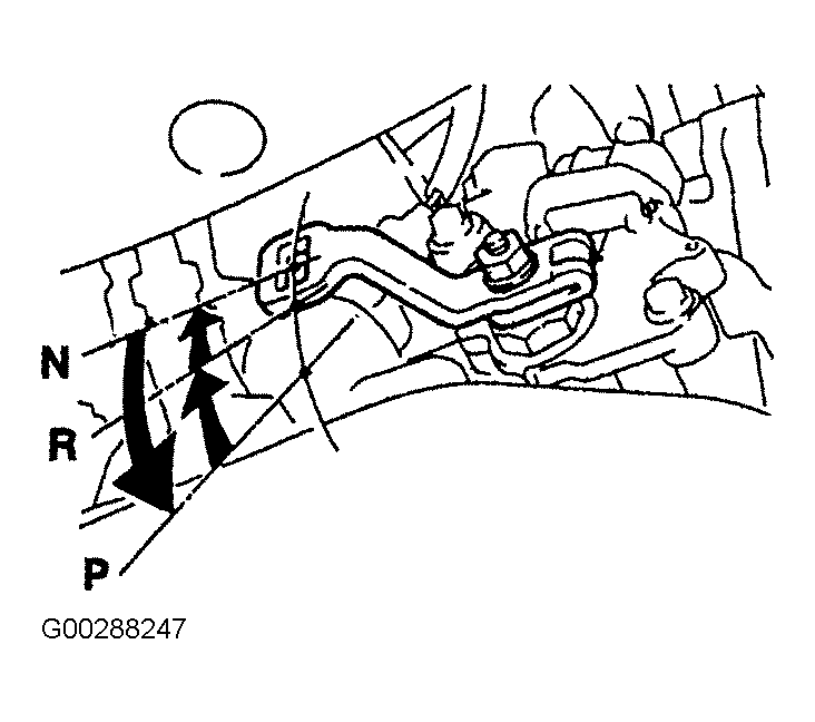 - Ensure shifting lever moves smoothly and can be operated moderately from "P" to "R" with ignition switch ON and brake pedal depressed. See Fig 1.