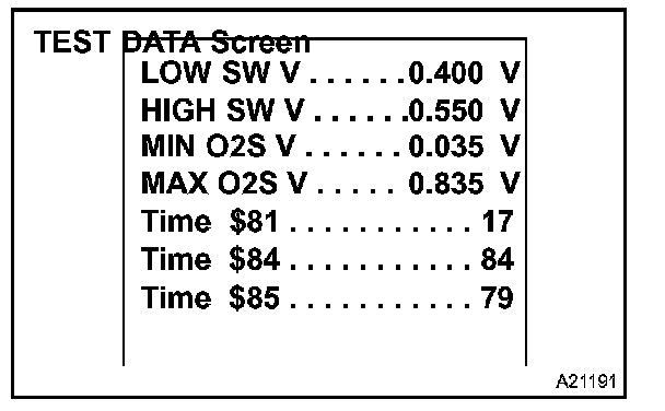 The ECM monitors the O2S in the various items. You can read the monitor result (TEST DATA) of each monitor item using the O2S TEST RESULT. However, the output value of the TEST DATA is the latest "snapshot" value that is taken after monitoring and therefore it is not dynamic.