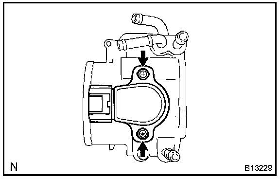 3. Gradually turn sensor counterclockwise until it touches the throttle valve shaft, and temporarily tighten the 2 set screws.