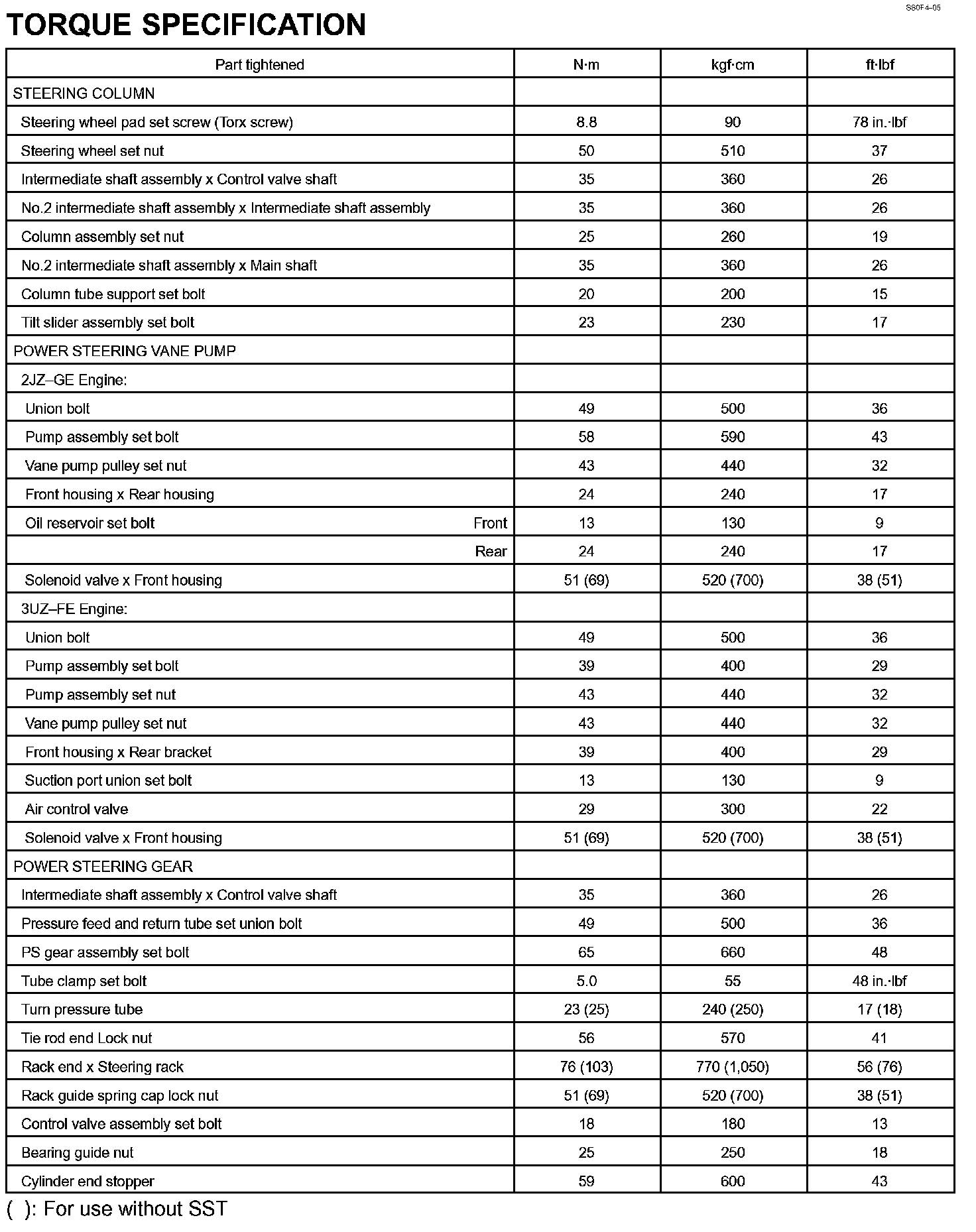 Steering - Torque Specification: