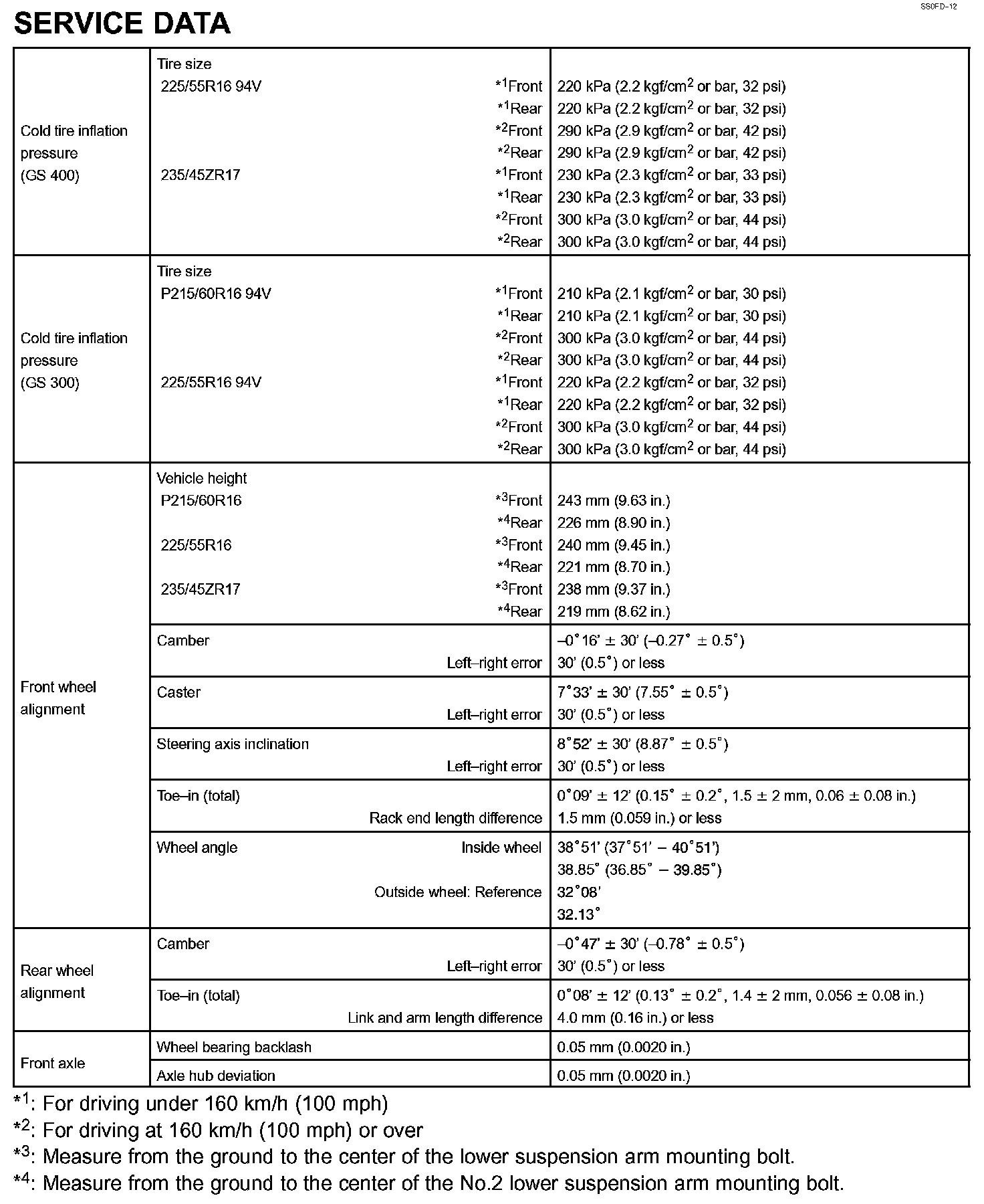Home >> Lexus >> 2004 >> GS 430 V8-4.3L (3UZ-FE) >> Repair and Diagnosis >> Specifications >> Mechanical Specifications >> Suspension >> System Specifications