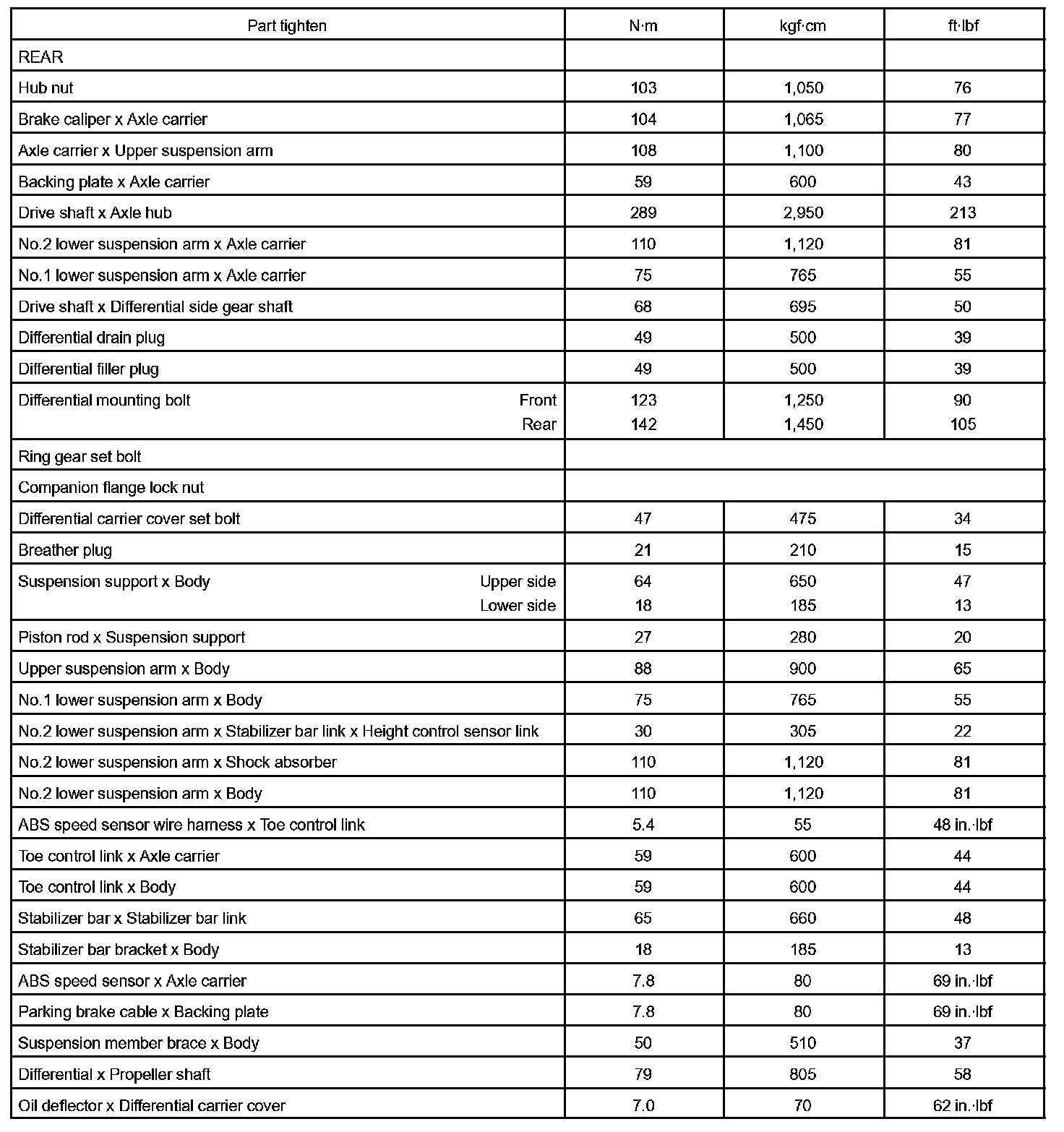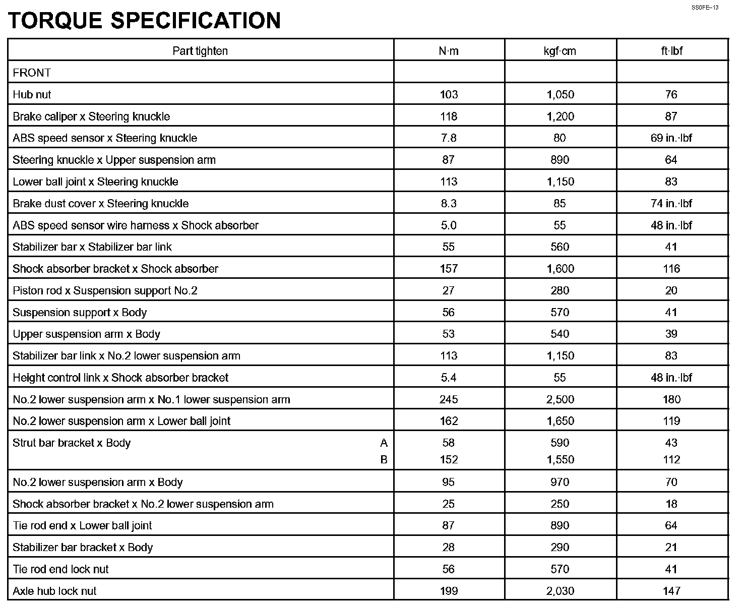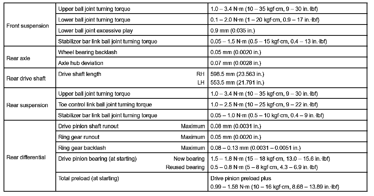 Suspension And Axle - Torque Specification Part 1: