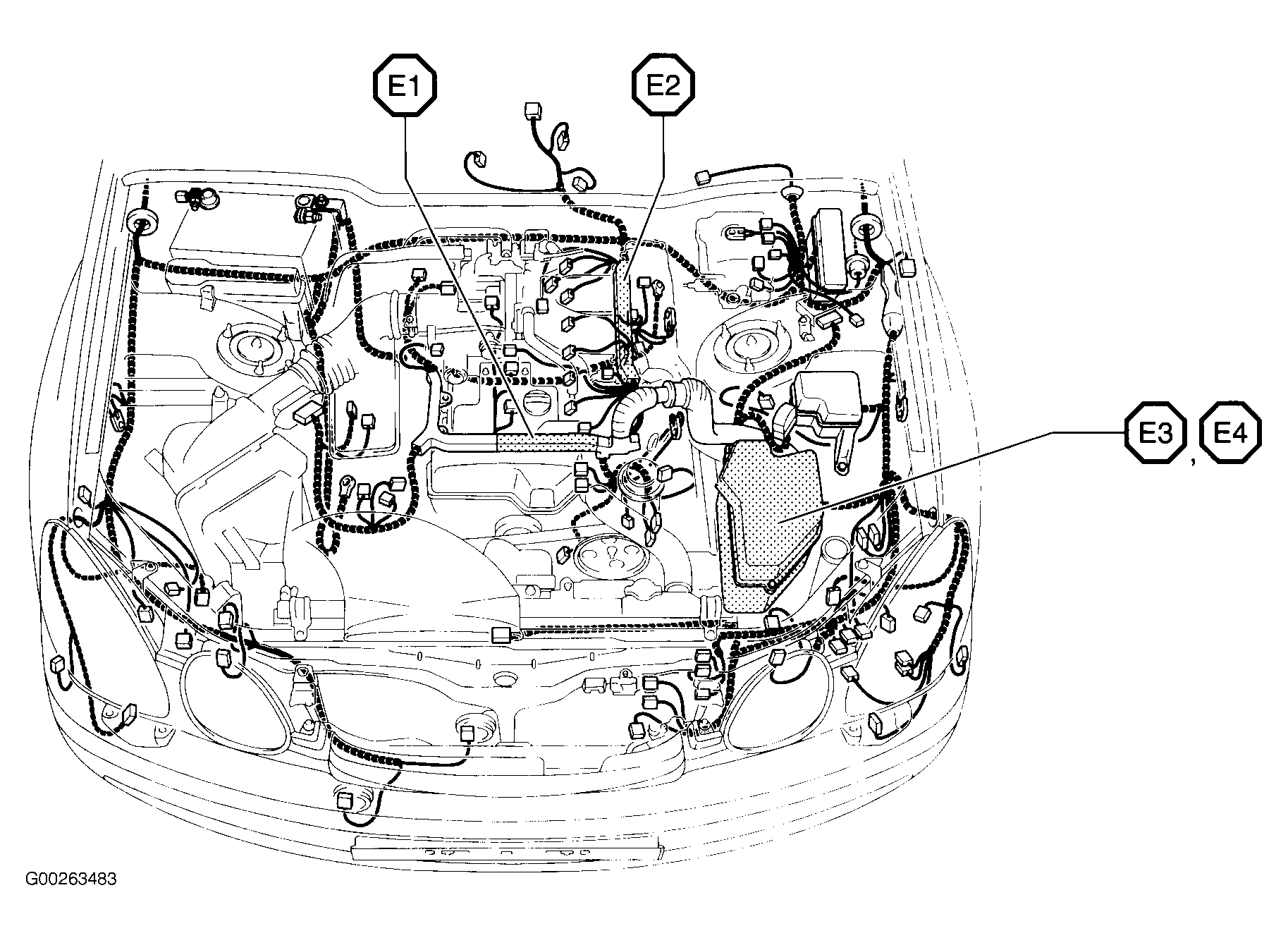 E3 (3.0L) In engine harness, inside of ECU box. See Figure.
