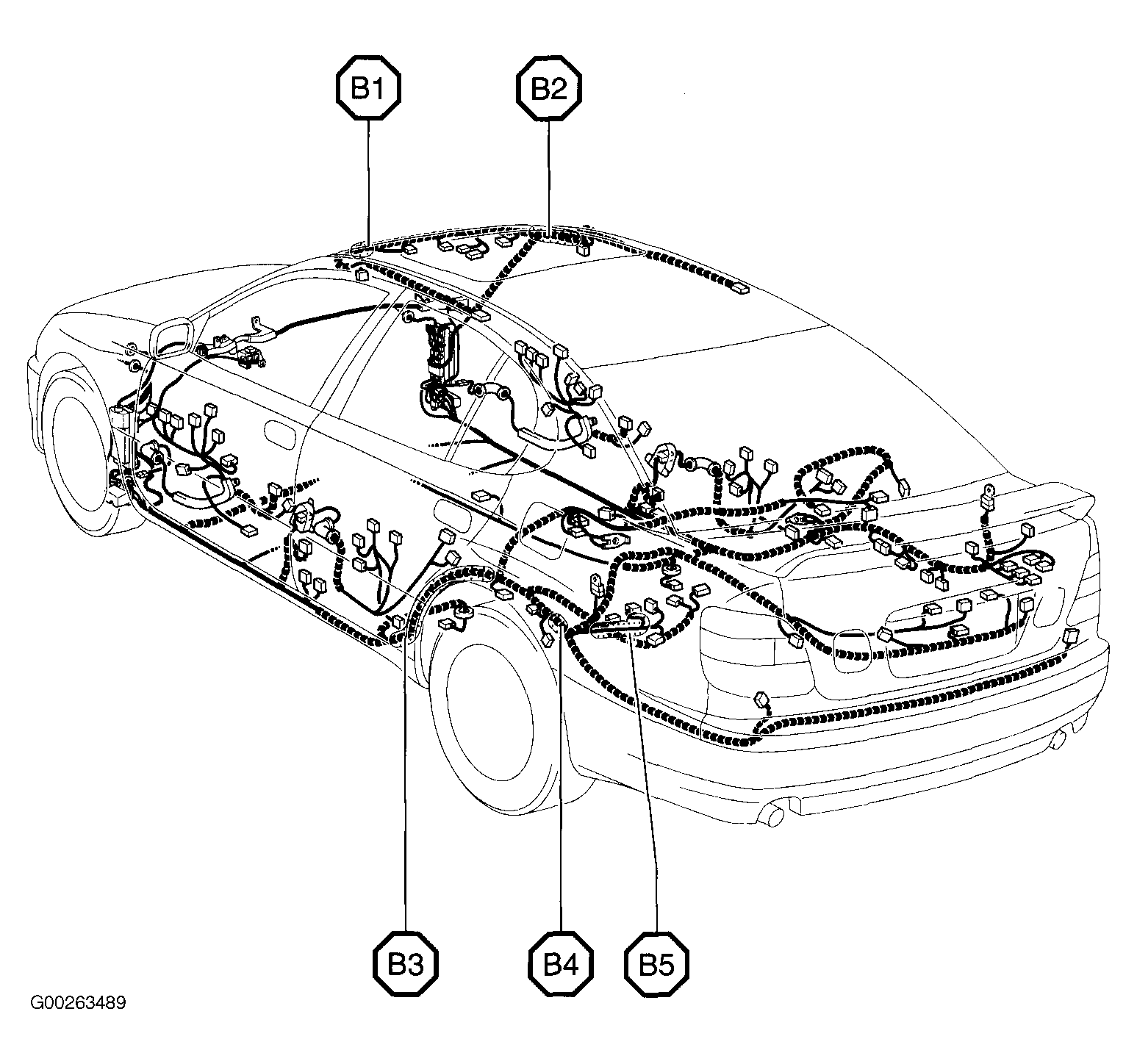 B5 In body harness, at left front of luggage compartment floor. See Figure.