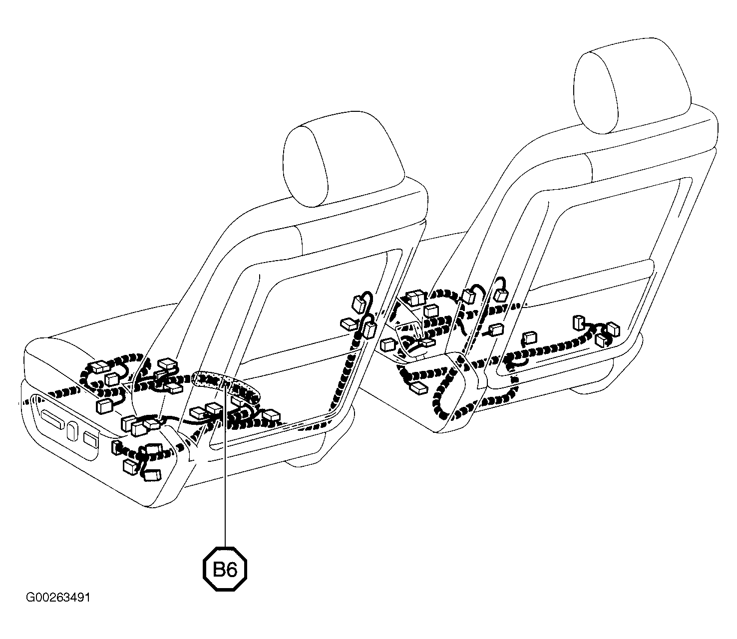 B2 In body harness, at top of right "A" pillar. See Figure.
