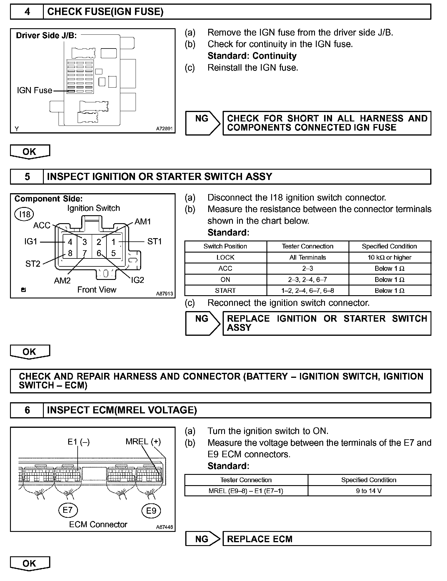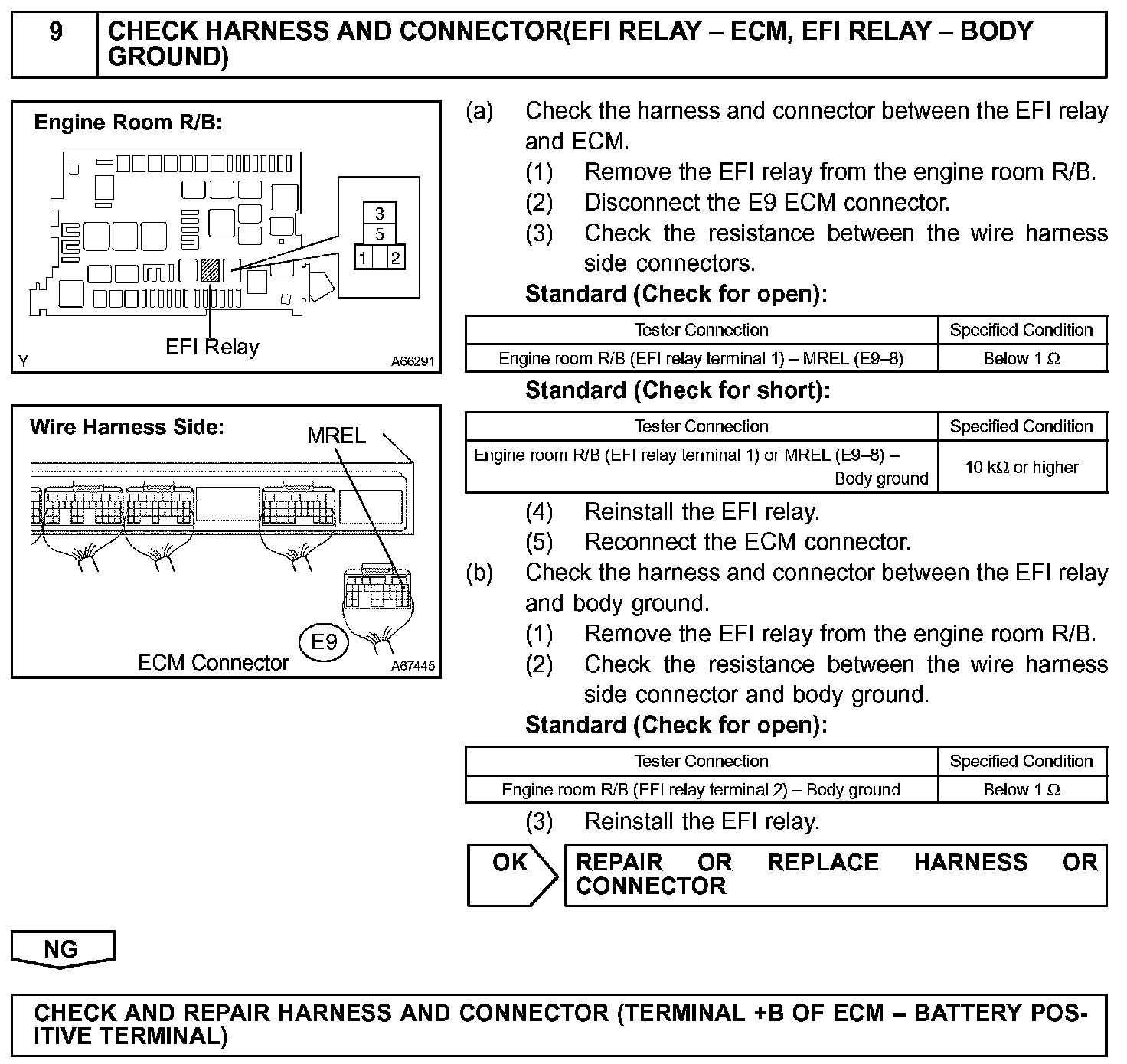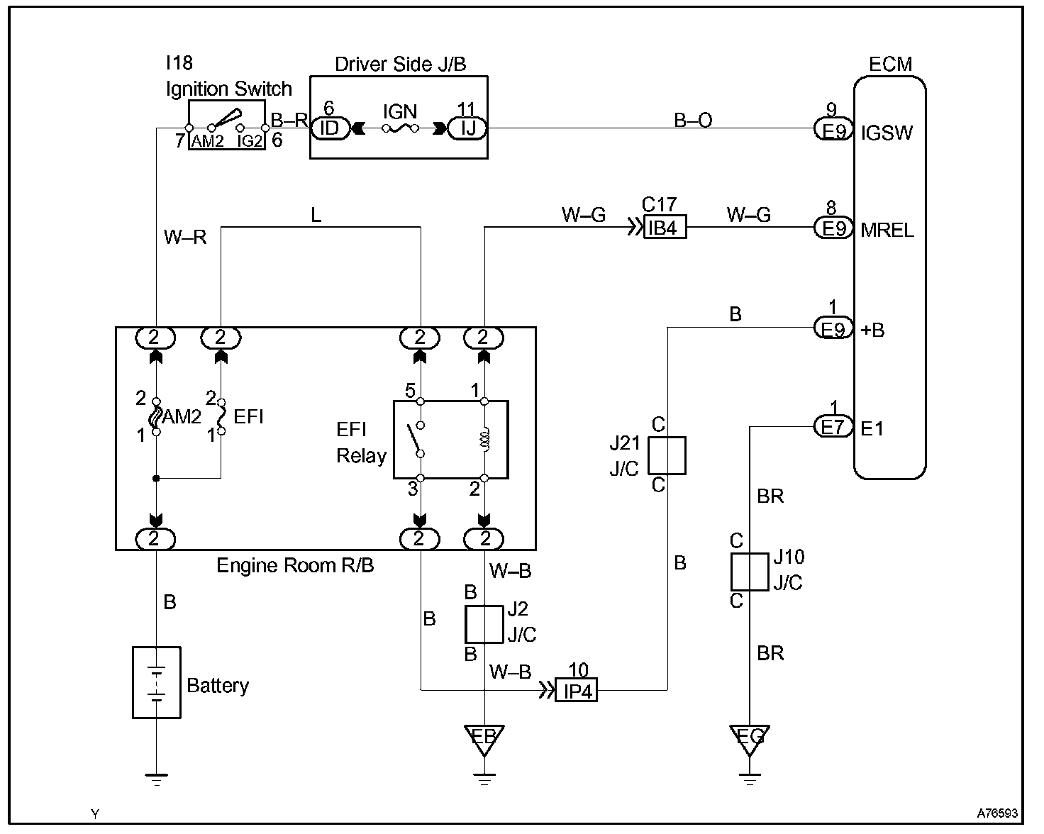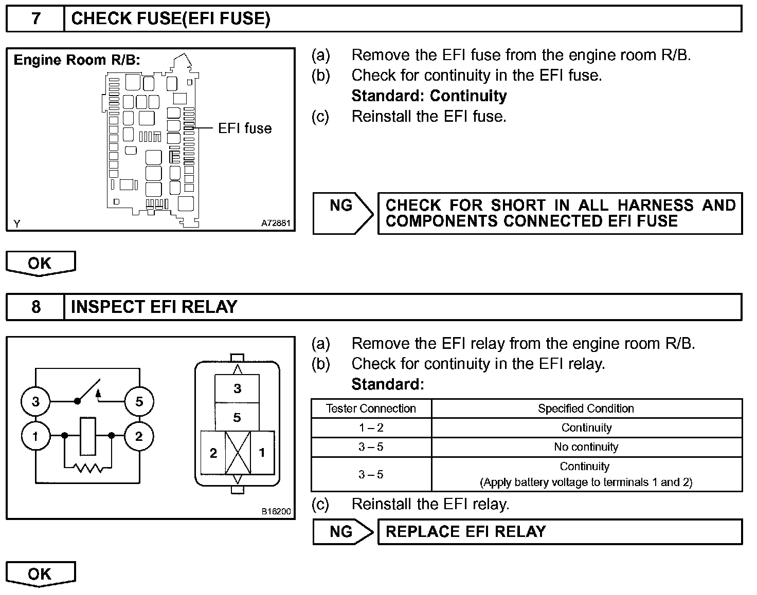 This signal causes current to flow to the coil, closing the contacts of the EFI relay and supplying power to terminal +B of the ECM.