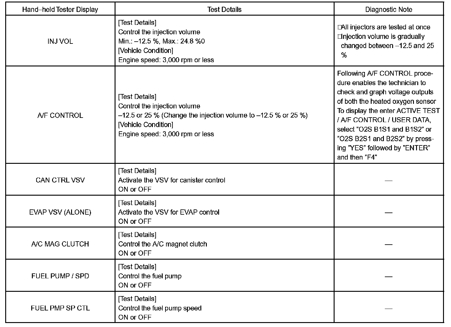 ACTIVE TESTHINT: Performing ACTIVE TEST using the hand-held tester allows the relay, VSV, actuator and so on to operate without parts removal. Performing the ACTIVE TEST as a first step of troubleshooting is one of the method to shorten the labor time.