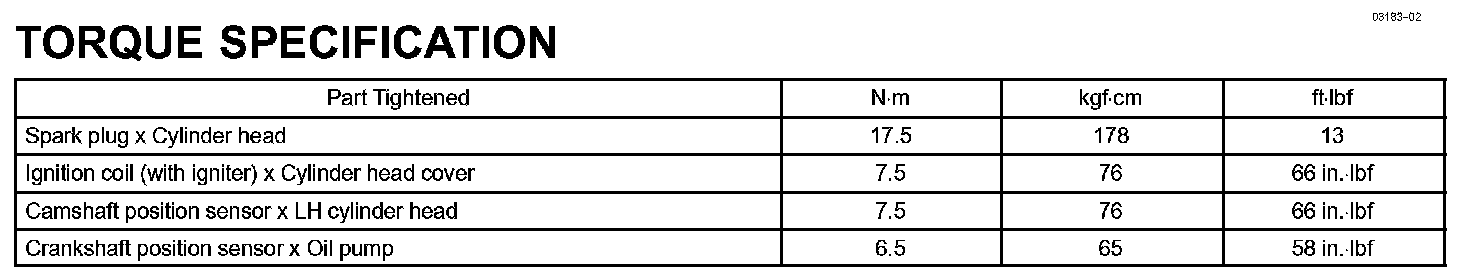 Ignition - Torque Specification: