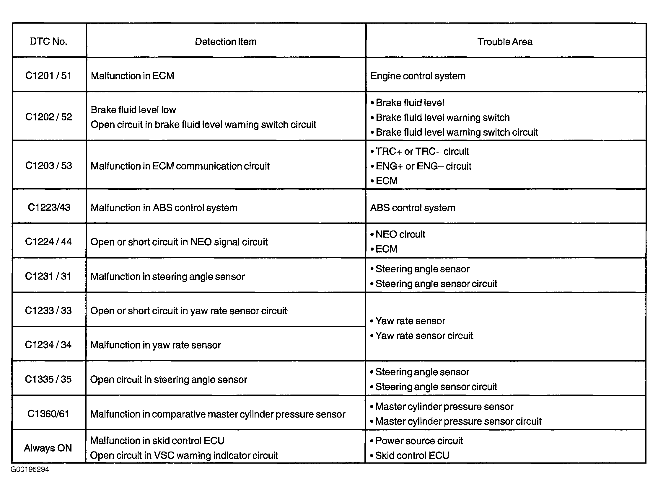 Home >> Lexus >> 2004 >> IS 300 Base, Automatic >> Repair and Diagnosis >> Brakes >> Traction Control >> Anti-Lock/Vehicle Skid Control >> Self-Diagnostic System >> Diagnostic Trouble Code Definitions >> VSC