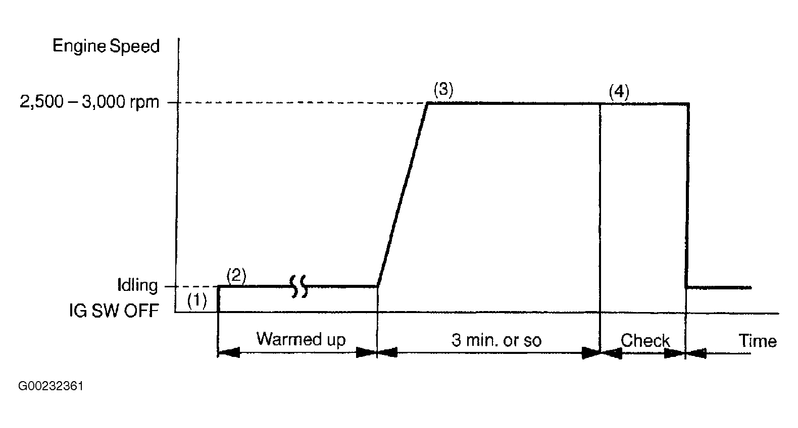 Connect Lexus scan tool to Data Link Connector (DLC) No. 3. See Figure. Ensure all accessories are turned off. Start and warm engine to normal operating temperature. Increase engine speed to 2500-3000 RPM for 3 minutes. Using Lexus scan tool, ensure heated oxygen sensors (bank No. 1 and 2, sensor No. 1 and 2) feedback to ECM fluctuates around .5 volt. See Fig 1.