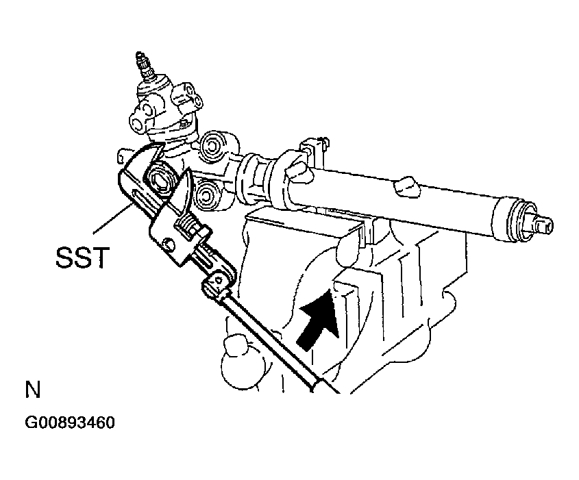 - Using a spanner, hold the steering rack steadily and using SST, remove the rack end.