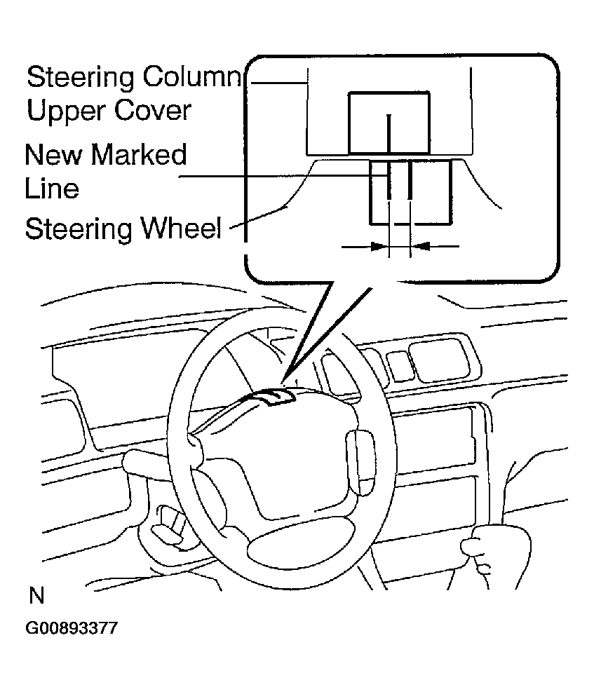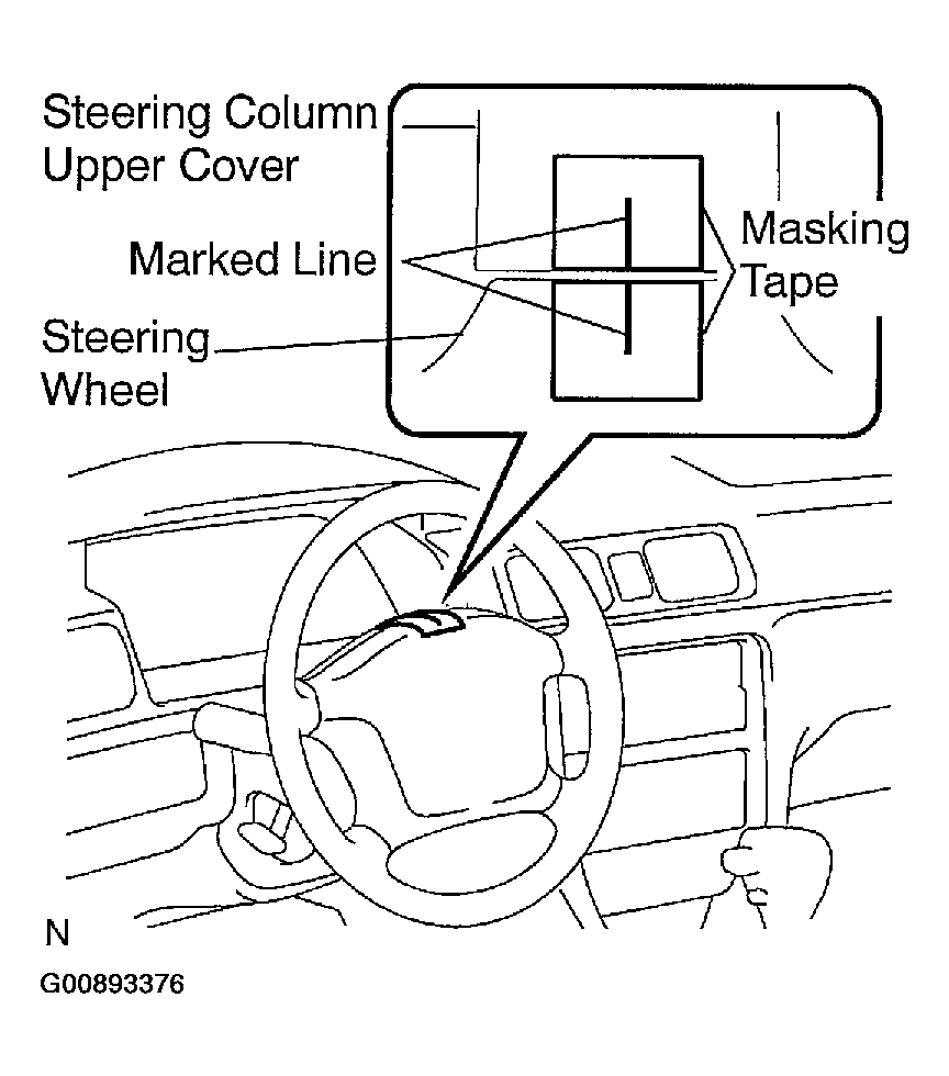 - Apply masking tape on the top center of the steering wheel and steering column upper cover.