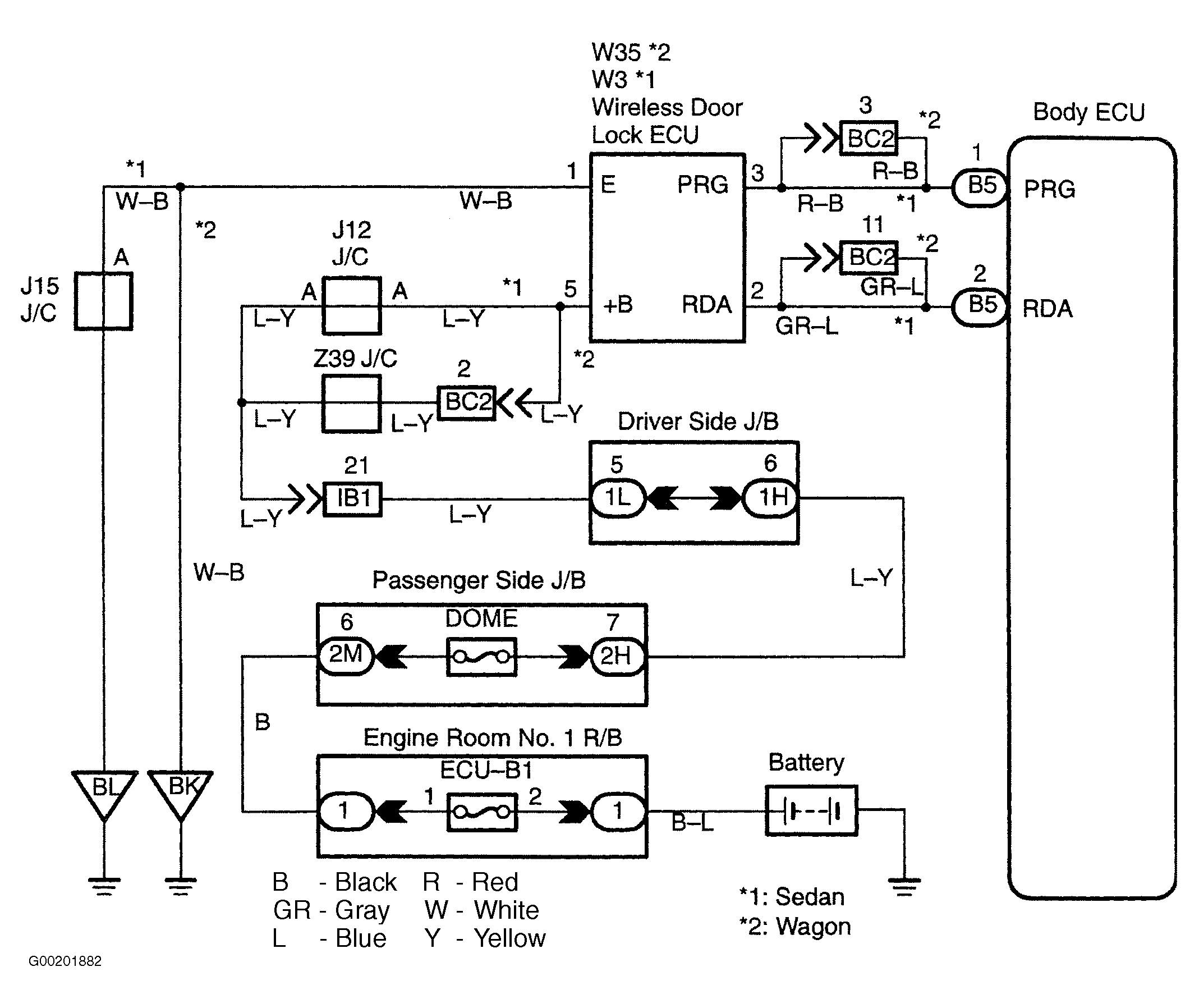 The signal from the transmitter will be input to the body ECU through the RDA line. The RDA line is diagnosed by the body ECU, so check the DTC in case of failure of the wireless function. For circuit diagram, see Fig 1.
