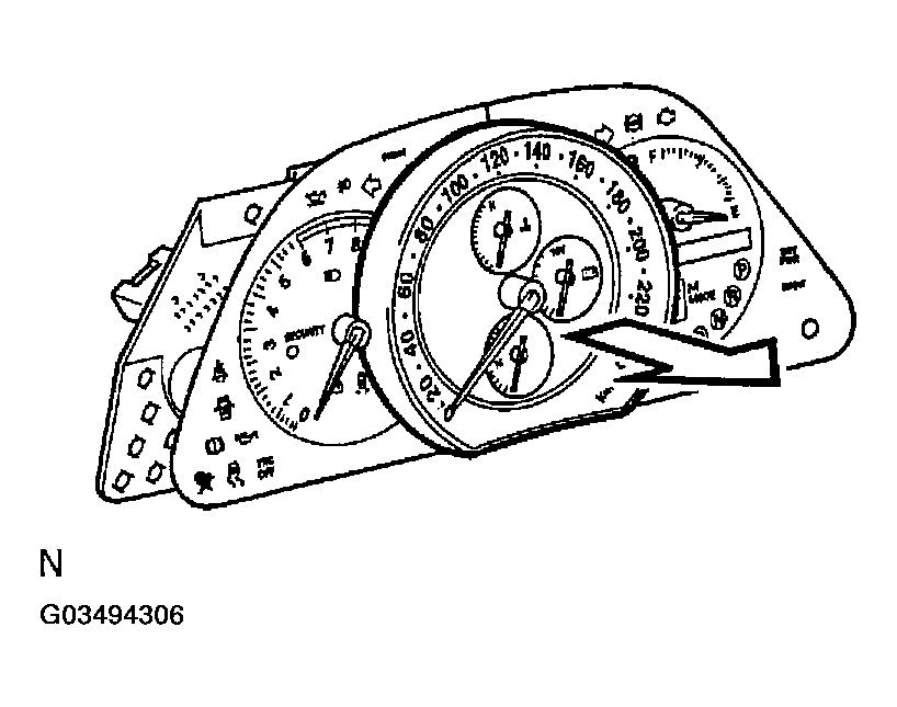 Pull the speed meter assembly in the direction indicated by the arrow in Fig 2 and disconnect the engagement of the combination meter computer assembly to remove the speed meter assembly.