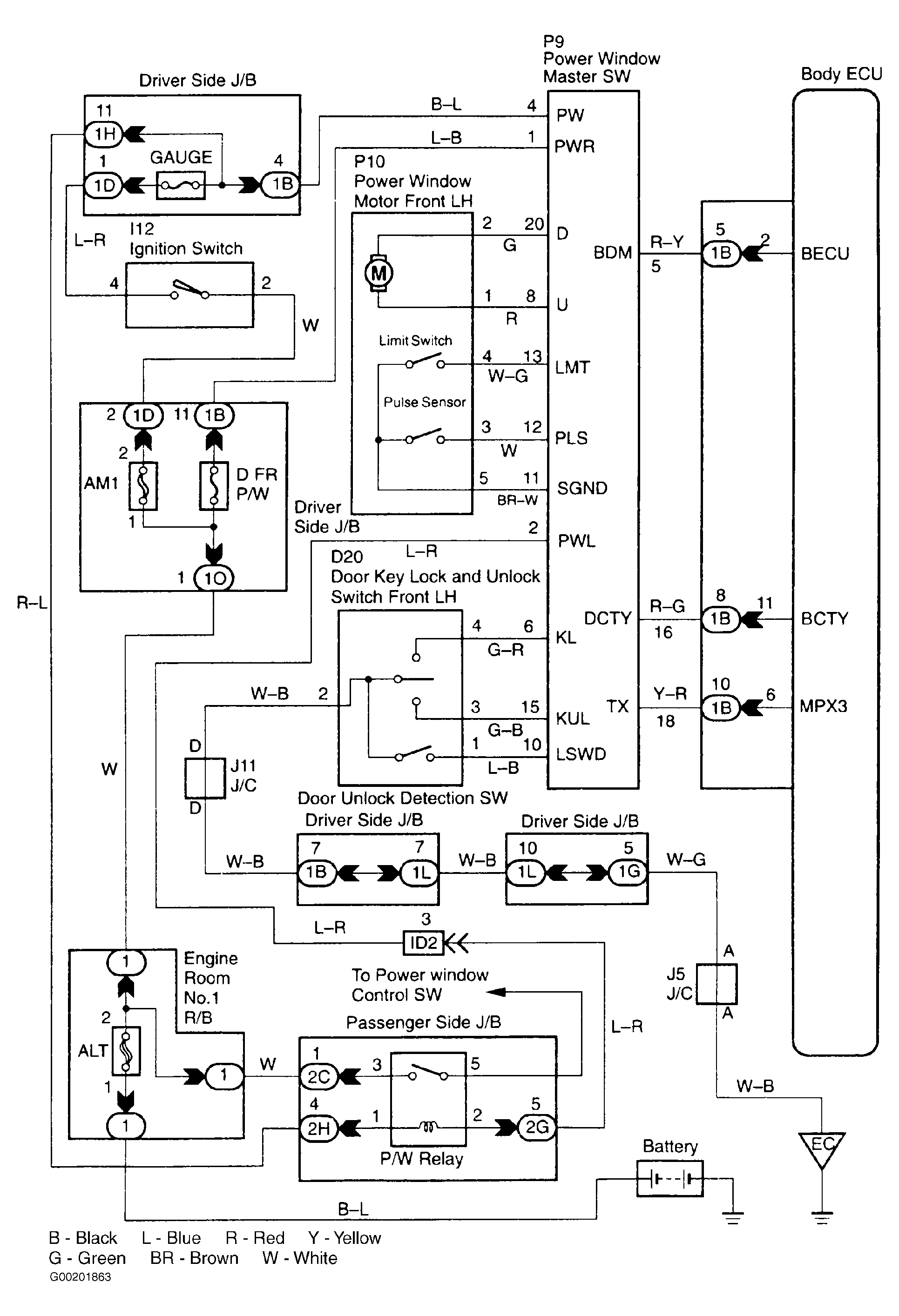 (5) Check the door key lock and unlock switch circuit. See Figure.