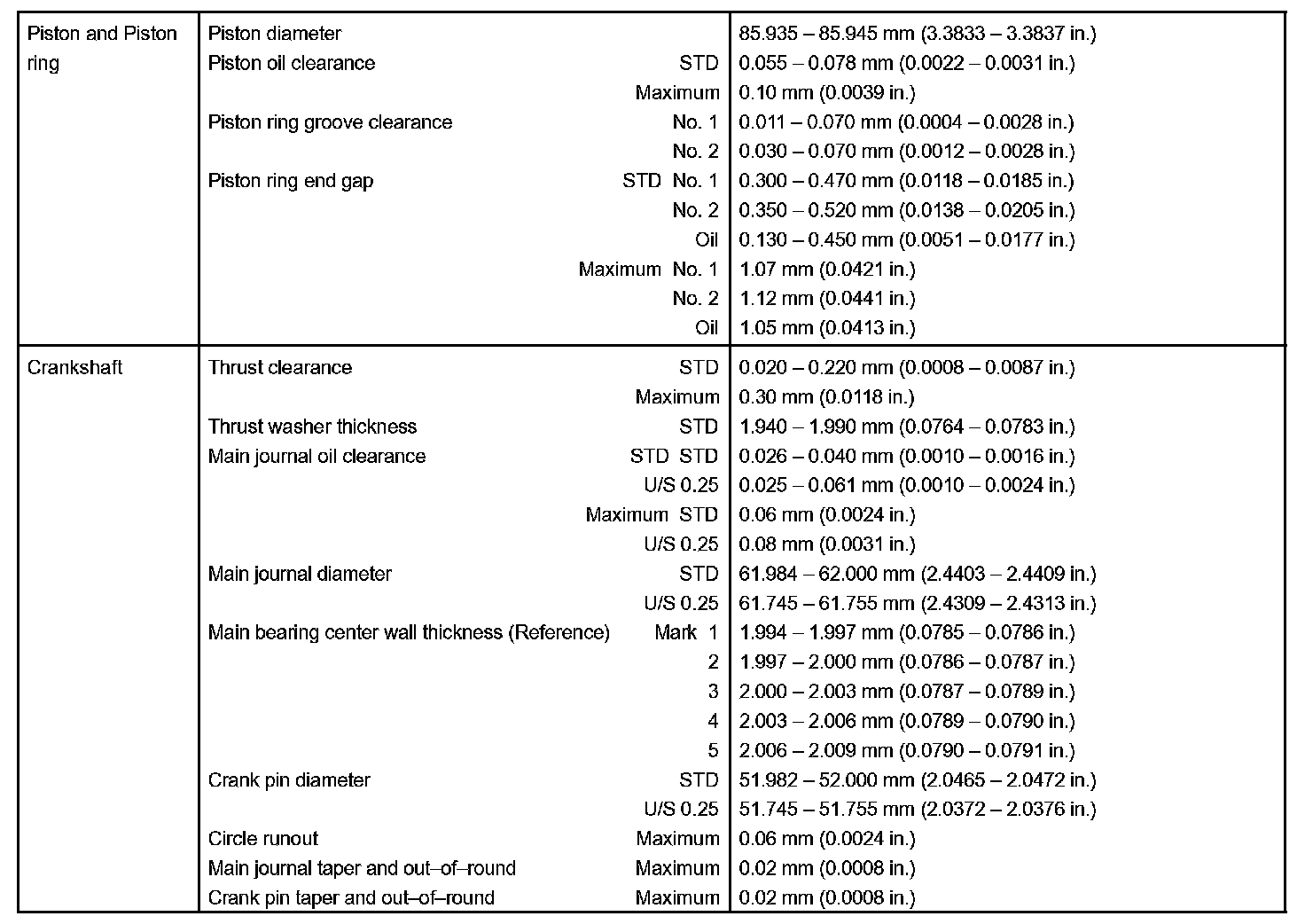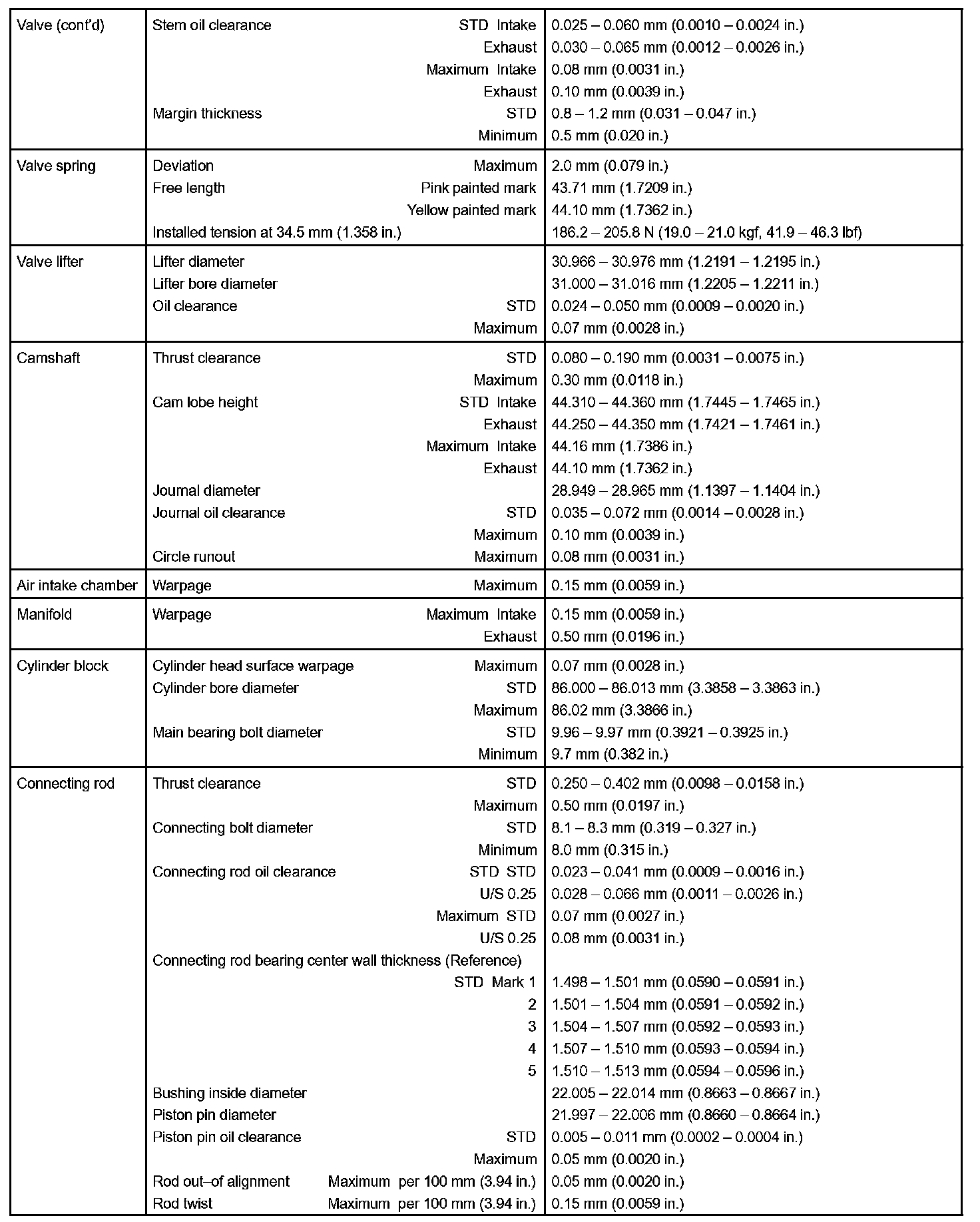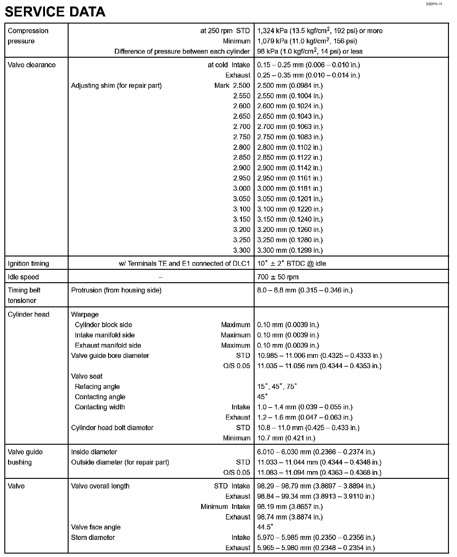 Engine Mechanical - Service Data Part 2: