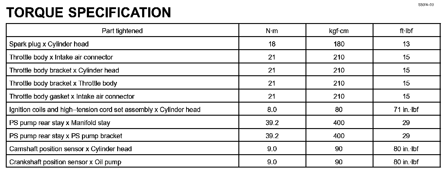Ignition - Torque Specification: